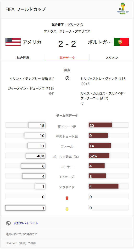 アメリカ 2-2 ポルトガル [マナウス]