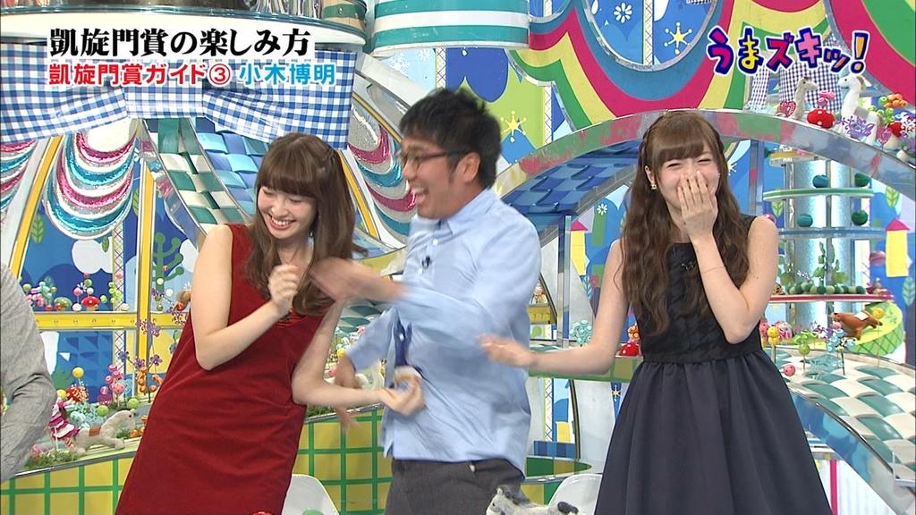 27日深夜に放送されたフジテレビの競馬バラエティ番組「うまズキッ!」で、MCを務めるお笑いコンビ・おぎやはぎの小木博明が、AKB48の小嶋陽菜と乃木坂46の白石麻衣に抱きつくシーンが放送され、一部ファンが小木に対して激怒している。